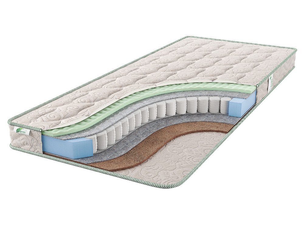 Кокосовая койра - экологически чистый натуральный наполнитель, состоящий из кокосовых волокон, обладает хорошим воздухо- и влагообменом, гипоаллергенностью и долговечностью.