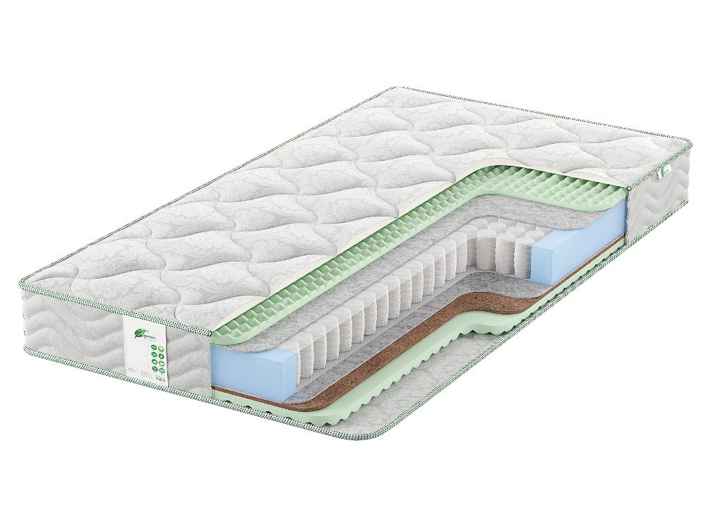 Кокосовая койра - экологически чистый натуральный наполнитель, состоящий из кокосовых волокон, обладает хорошим воздухо- и влагообменом, гипоаллергенностью и долговечностью.