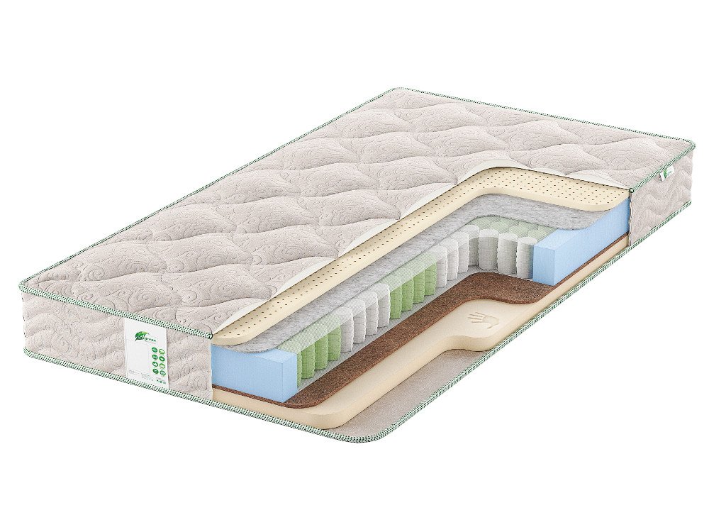 Кокосовая койра - экологически чистый натуральный наполнитель, состоящий из кокосовых волокон, обладает хорошим воздухо- и влагообменом, гипоаллергенностью и долговечностью.