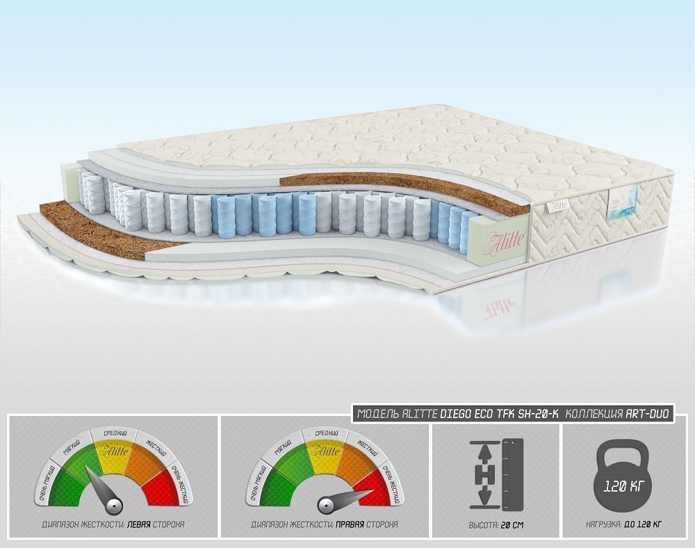 Акция от магазина "TOP-MATRAS.RU" — официального диллера фабрики Alitte в Москве и по всей России: скидка 50% на Матрас Alitte Diego Eco TFK SH-20-K.