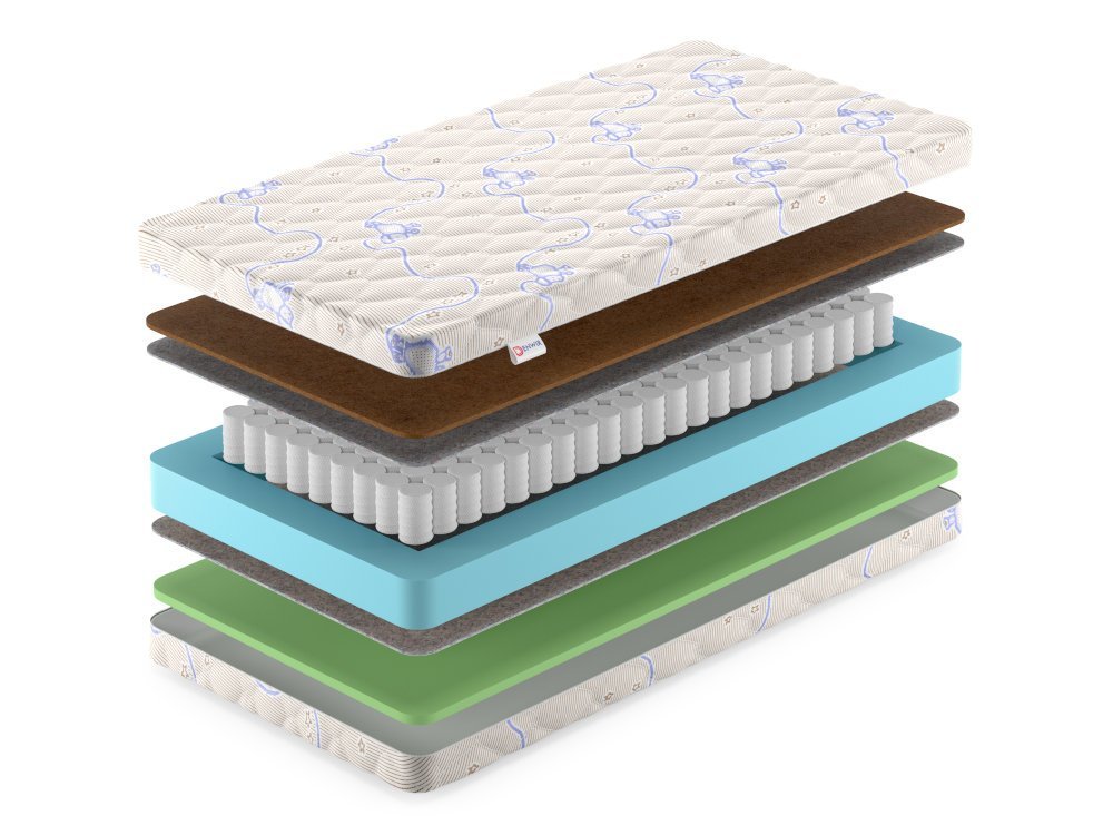 Кокосовая койра - экологически чистый натуральный наполнитель, состоящий из кокосовых волокон, обладает хорошим воздухо- и влагообменом, гипоаллергенностью и долговечностью.