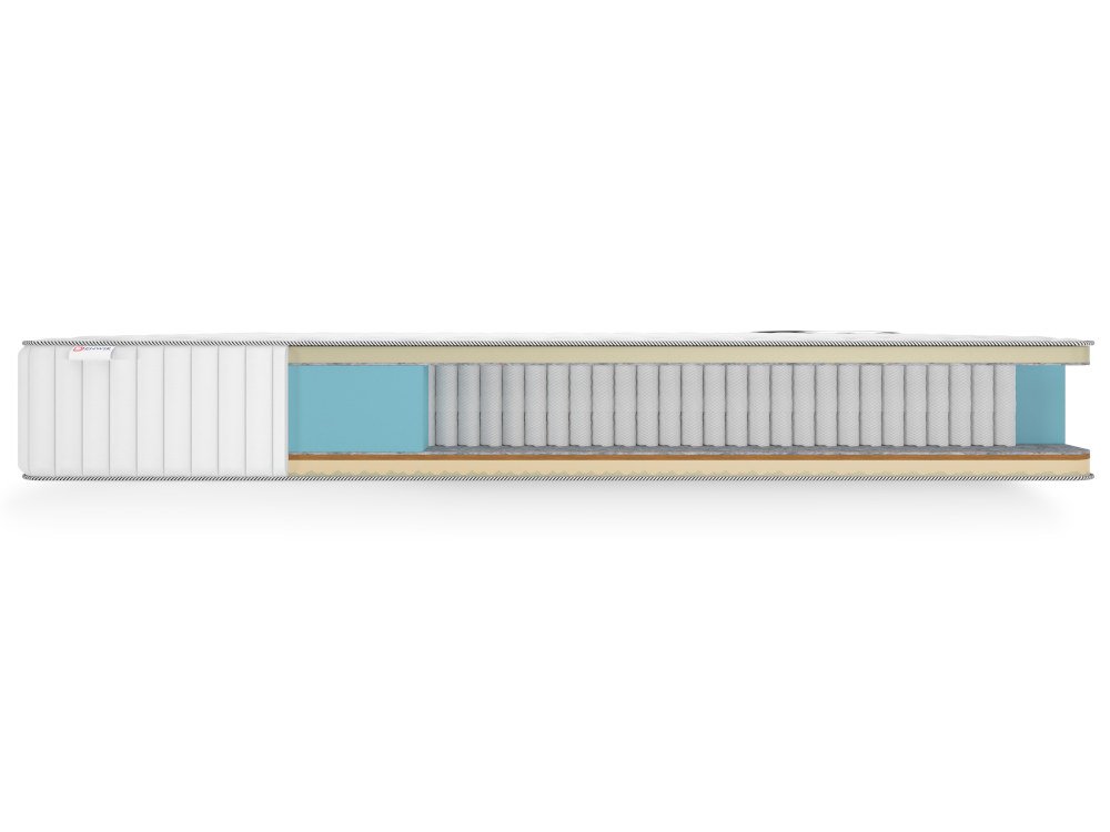 Каждая из пружин находится в отдельном нетканом кармашке, что также гарантирует отсутствие шумов, возникающих от контакта пружин между собой. Весь этот механизм работает так что каждая из пружин индивидуально воспринимает нагрузку и принимает форму тела, повышая анатомические и ортопедические характеристики матраса.