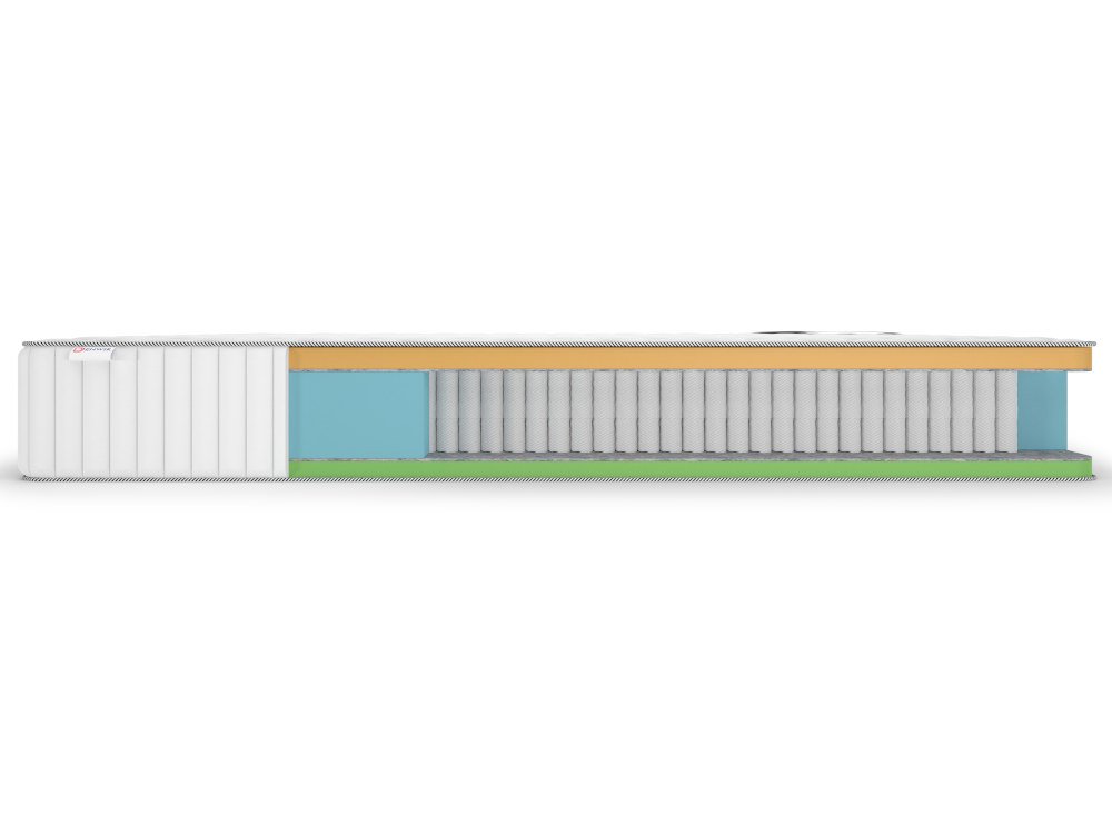 Каждая из пружин находится в отдельном нетканом кармашке, что также гарантирует отсутствие шумов, возникающих от контакта пружин между собой. Весь этот механизм работает так что каждая из пружин индивидуально воспринимает нагрузку и принимает форму тела, повышая анатомические и ортопедические характеристики матраса.