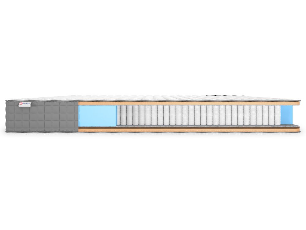 Каждая из пружин находится в отдельном нетканом кармашке, что также гарантирует отсутствие шумов, возникающих от контакта пружин между собой. Весь этот механизм работает так что каждая из пружин индивидуально воспринимает нагрузку и принимает форму тела, повышая анатомические и ортопедические характеристики матраса.