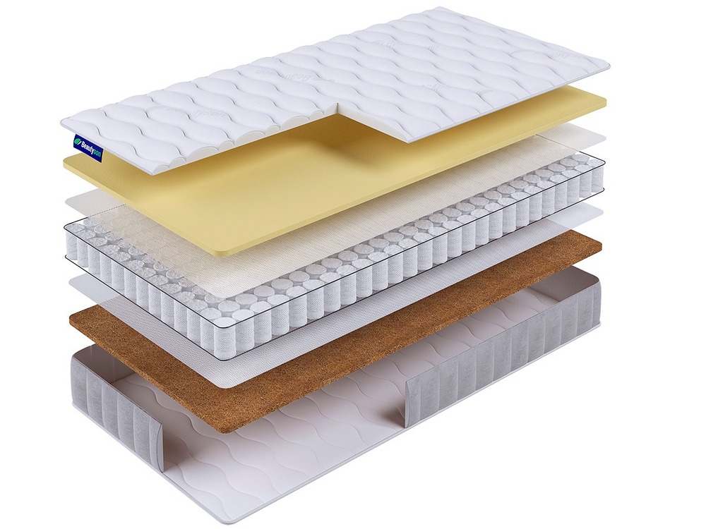 - Кокосовая койра: Жесткий и экологически чистый материал, придающий поверхности матраса необходимую упругость и обеспечивающий правильную поддержку позвоночника. Обладает отличными ортопедическими и эксплуатационными характеристиками.