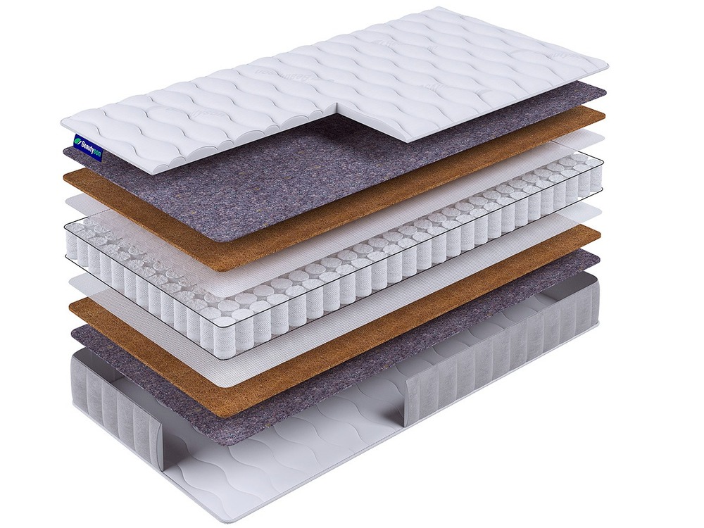 - Хлопчатобумажное полотно: Мягкий и прочный материал с гипоаллергенными свойствами. Равномерно распределяет нагрузку на пружинный блок, обеспечивая дополнительную ортопедическую поддержку позвоночника во время сна.