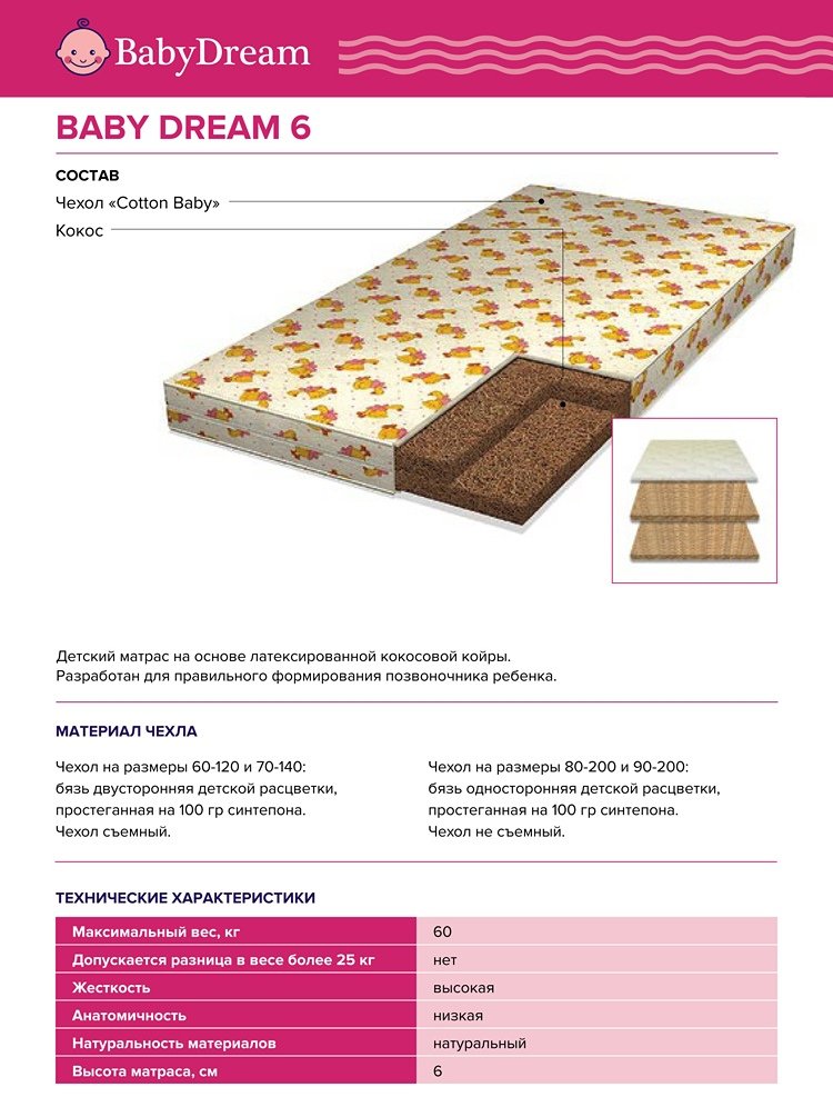 Отзывы о товаре Детский матрас Dreamline Baby Dream 6 80x180 см |