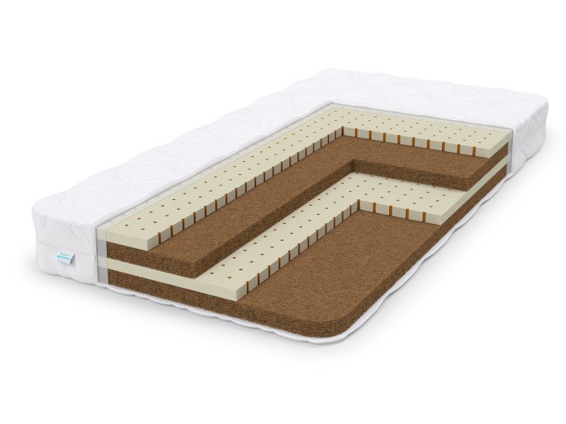 Кокосовая койра - экологически чистый натуральный наполнитель, состоящий из кокосовых волокон, обладает хорошим воздухо- и влагообменом, гипоаллергенностью и долговечностью.