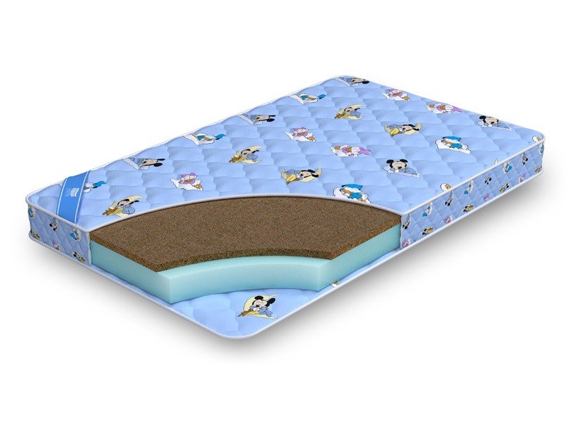 Поверхность одной стороны сформирована плитой из кокосовой койры, толщиной 1 сантиметр. Кокос укрепляет спальное место, не прогибается со временем. Поддерживает позвоночник в правильном положении. Выдерживает интенсивные нагрузки от маленьких любителей прыжков на кровати.