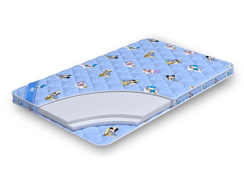 Изготовлен из струтто – нетканого материала на основе полиэстера. Нити в наполнителе располагаются вертикально и образуют пружинистый пласт. Принцип их действия подобен эффекту блока с независимыми пружинами. Умеренно-жёсткая спальная поверхность обеспечивает анатомически правильное положение тела в любой позе сна. Способствует формированию у ребёнка правильной осанки.