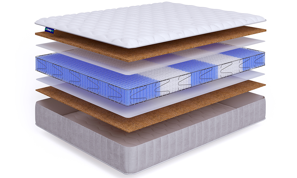 - Кокосовая койра: Природный материал из волокон кокоса, пропитанных латексом. Обеспечивает упругость, жесткость и долговечность матраса. Обладает превосходными ортопедическими характеристиками.