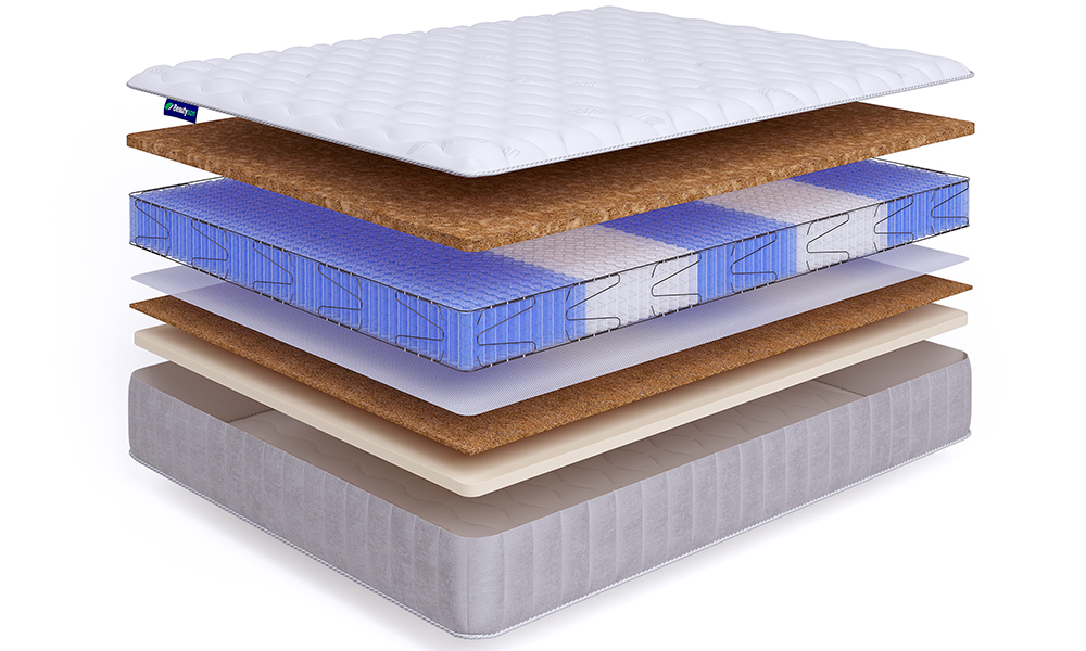 - Кокосовая койра: Натуральный материал из кокосовых волокон, пропитанных латексом. Придает матрасу упругость и жесткость, улучшая его ортопедические свойства и увеличивая срок службы.