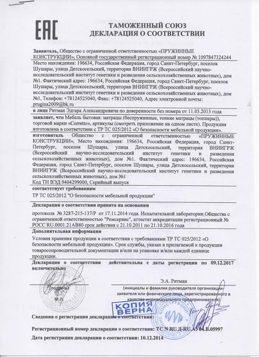 Акция от магазина "TOP-MATRAS.RU" — официального диллера фабрики Corretto в Москве и по всей России: скидка 55% на Corretto Naun.