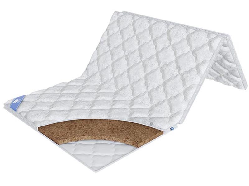 Модель выполнена кокосовой койрой, толщиной 3 сантиметра. Кокосовая плита, пропитанная натуральным латексом, укрепляет спальное место, не допускает образования прогибов. Держит спину в анатомически правильном положении, способствует формированию красивой осанки. Благодаря своей структуре, наполнитель хорошо проводит воздух. Спать в жару на нём очень комфортно.