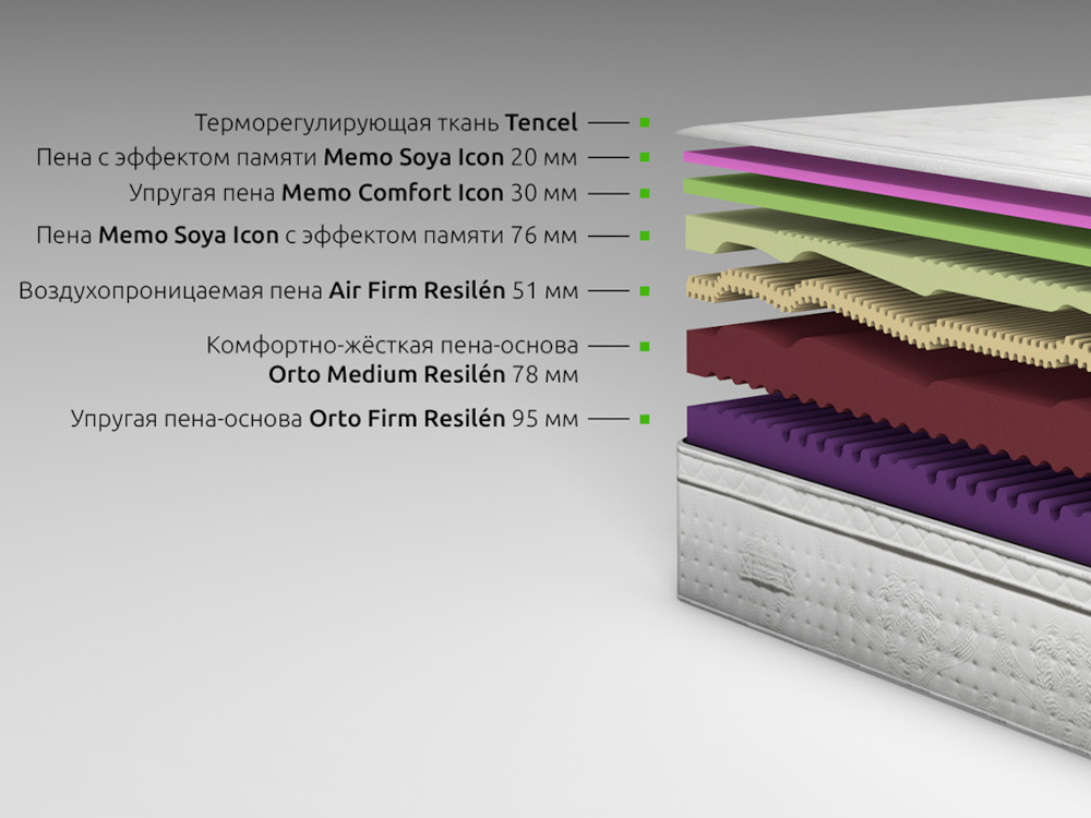 Материал имеет уникальное свойство, под воздействием температуры тела, он становиться мягче на локальном участке поверхности, таким образом получив способность "запоминать" на короткое время, контуры приложенной к нему нагрузки. Другими словами, этерлон материал с памятью, принимающий контуры Вашего тела. Матрасы, в которых используется этот материал, исключительно удобны и гигиеничны. Hезаменим для людей с больными суставами, нарушенным кровообращением.