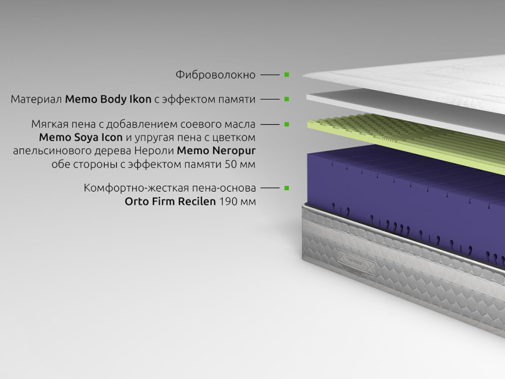 Материал имеет уникальное свойство, под воздействием температуры тела, он становиться мягче на локальном участке поверхности, таким образом получив способность "запоминать" на короткое время, контуры приложенной к нему нагрузки. Другими словами, мемори микс - материал с памятью, принимающий контуры Вашего тела. Матрасы, в которых используется этот материал, исключительно удобны и гигиеничны. Hезаменим для людей с больными суставами, нарушенным кровообращением.
