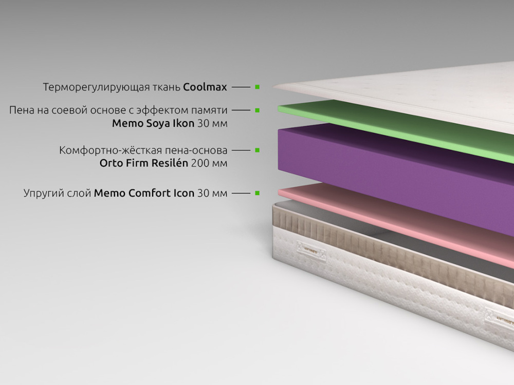 Материал имеет уникальное свойство, под воздействием температуры тела, он становиться мягче на локальном участке поверхности, таким образом получив способность "запоминать" на короткое время, контуры приложенной к нему нагрузки. Другими словами, мемори микс - материал с памятью, принимающий контуры Вашего тела. Матрасы, в которых используется этот материал, исключительно удобны и гигиеничны. Hезаменим для людей с больными суставами, нарушенным кровообращением.