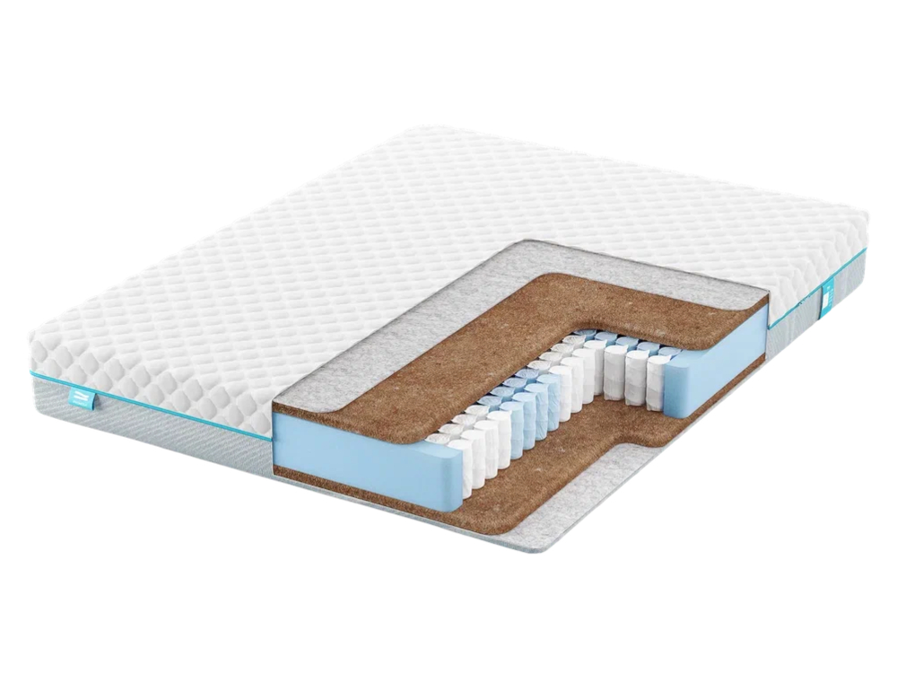 Кокосовая койра - экологически чистый материал, жесткий, упругий, с высокими ортопедическими свойствами. Струттофайбер - гибкий, эластичный, износоустойчивый материал, имеющий плотную структуру. Объединив эти два наполнителя, технологи добились сочетания экологичности, жесткости и особой прочности в новом материале - Би-кокос.