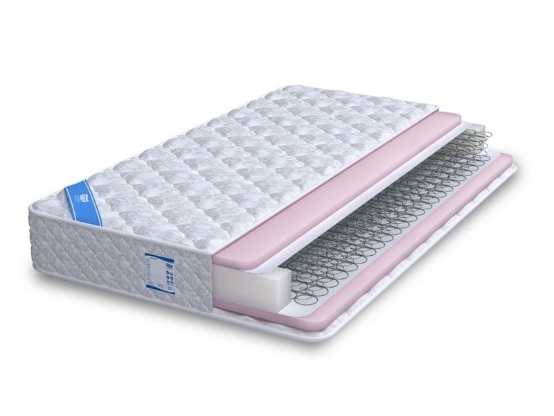 В основе лежит пружинный блок Боннель – простая, долговечная конструкция из зависимых пружин. По обеим сторонам, в качестве изолирующего материала, проложен спанбонд. Поверхность с двух сторон усилена блоком из искусственного латекса, толщиной 3 сантиметра. Наполнитель обладает повышенной упругостью, равномерно распределяет нагрузку на спальное место. Подстраивается под контуры фигуры. Всё это способствует расслаблению мышц и быстрому погружению в комфортный, спокойный сон.