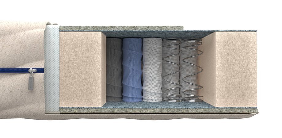 Термовойлок обладает высокой износоустойчивостью и прочностью, часто используется как изолирующий слой между пружинным блоком и верхними наполнителями. Умеренно жесткий, хорошо распределяет нагрузку, не подвержен слеживанию и деформации, поэтому часто используется как основа в беспружинных матрасах.