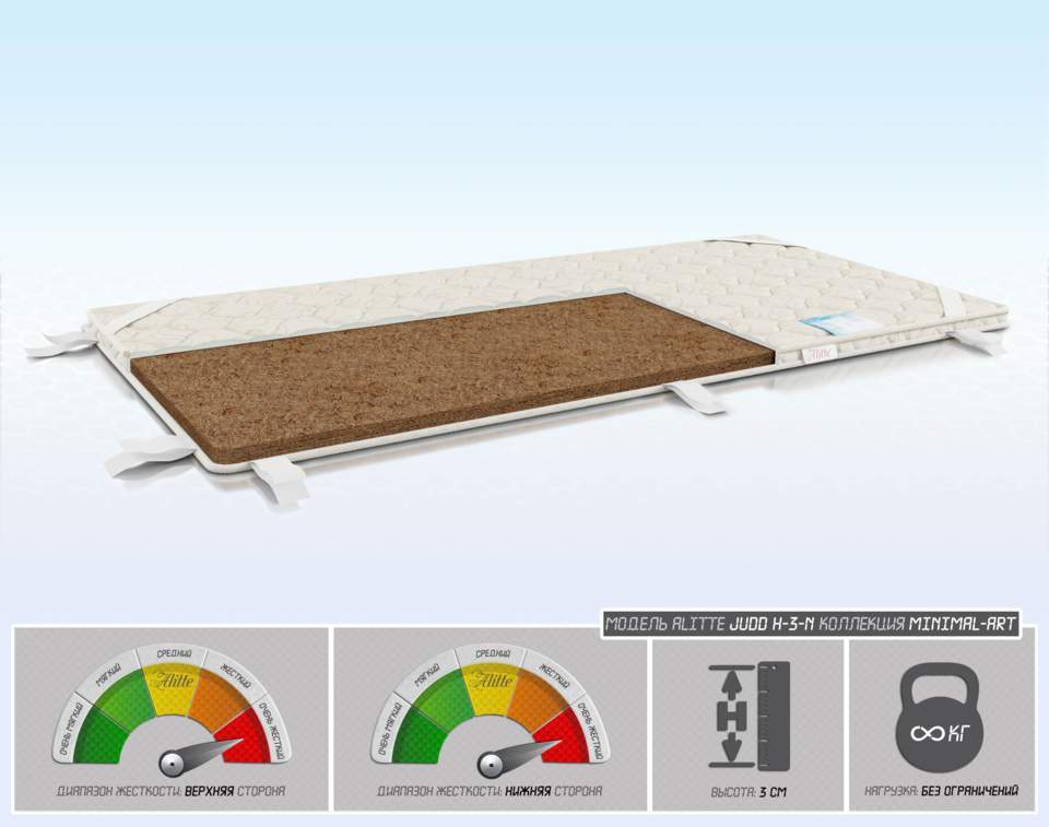 Тонкий ортопедический наматрасник Judd H-3-N полностью состоит из одного материала наполнения. Жесткая кокосовая койра выложена плитой в 3 см. высотой. Наматрасник выравнивает поверхность, скрывает стыки и неровности диванов и кроватей, может использоваться как самостоятельное спальное место. Кокосовое наполнение позволяет принять анатомически правильное положение тела во время сна, наполнитель не гниет, не крошится, не накапливает пыль и влагу. Изделие подходит для аллергиков и детей с самого раннего возраста. Наматрасник умеренно жесткий. ЧехолЧехол пошит из прочной и красивой жаккардовой ткани с добавлением хлопка. Ткань пропитана составом с ионами серебра, который препятствует размножению бактерий и постельных грибков. По краям чехла вшиты эластичные резинки. ПреимуществаЖесткий ортопедический наматрасник с натуральной койрой кокоса в наполнении; эластичные резинки для крепления по краям, на выбор можно заменить липучками; привлекательный внешний вид и цена. Интернет-магазин TOP-MATRAS.RU официально представляет марку Alitte на территории Москвы, Московской области и всей России. Мы соблюдаем ценовую политику брэнда Alitte, но готовы сделать индивидуальное ценовое предложения для наших клиентов. Кроме того, только у нас вы сможете выгодно и быстро купить матрас Alitte Judd H-3-N в любом нестандартном размере, с доставкой по городу Москва. Наматрасник Alitte Judd H-3-N размером 60 х 190 по цене — 7010 р. Успейте купить со скидкой 50%. Срок акции - с 15-10-2025 по 29-10-2025 Срок распродажи и количество товара ограничены. Действующая цена со скидкой 7010 р. Ваша экономия составит -7010 р. Для заказа наматрасника в Москве или Московской области звоните: +7 (800) 777-05-32