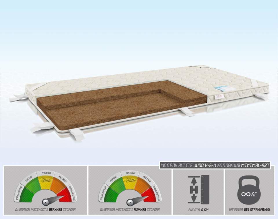 Тонкий ортопедический топпер Judd H-6-N состоит из двух плит жесткой койры кокоса (3 см. + 3 см.) скрепленных между собой. Наматрасник выравнивает поверхность, убирает стыки, вмятины и заломы, а также, делает спальную поверхность жесткой, упругой с хорошими ортопедическими свойствами. Наматрасник оказывает профилактическое воздействие на позвоночник, препятствует возникновению заболеваний опорно-двигательного аппарата. Наполнение из кокоса подходит для аллергиков и детей с самого раннего возраста. Наматрасник умеренно жесткий. ЧехолЧехол пошит из прочной и красивой жаккардовой ткани с добавлением хлопка и пропитан антибактериальным составом с ионами серебра. Ткань устойчива к износу, легко чистится, не теряет цвет и форму. ПреимуществаНевысокий жесткий топпер с натуральным кокосом в наполнении; чехол из хлопкового жаккарда; боковые резинки для фиксации на поверхности. Интернет-магазин TOP-MATRAS.RU официально представляет марку Alitte на территории Москвы, Московской области и всей России. Мы соблюдаем ценовую политику брэнда Alitte, но готовы сделать индивидуальное ценовое предложения для наших клиентов. Кроме того, только у нас вы сможете выгодно и быстро купить матрас Alitte Judd H-6-N в любом нестандартном размере, с доставкой по городу Москва. Наматрасник Alitte Judd H-6-N размером 60 х 190 по цене — 10008 р. Успейте купить со скидкой 50%. Срок акции - с 15-10-2025 по 29-10-2025 Срок распродажи и количество товара ограничены. Действующая цена со скидкой 10008 р. Ваша экономия составит -10008 р. Для заказа наматрасника в Москве или Московской области звоните: +7 (800) 777-05-32