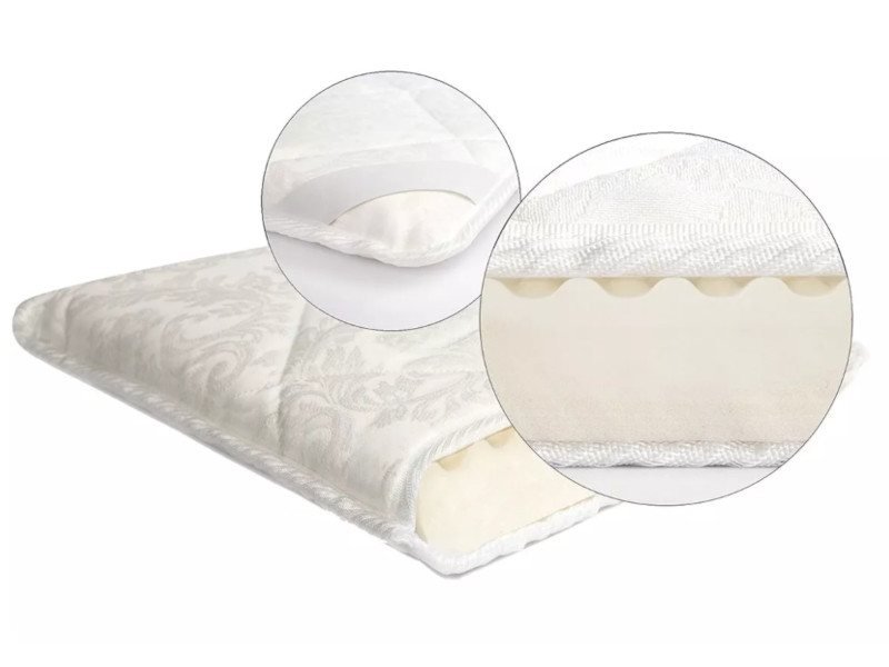 Наматрасник состоит из двустороннего блока пены эрголатекс. Одна сторона ровная и более упругая. Вторая — рельефная. Она мягче и обладает лёгким массажным действием.