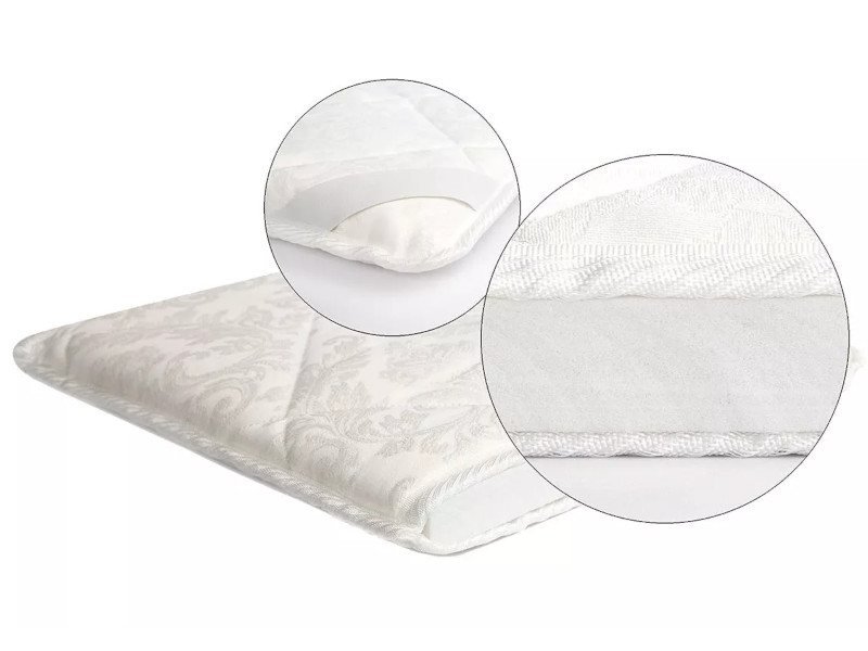 Чехол пошит из плотной жаккардовой ткани и простёган на синтепоне плотностью 300 гр/м². Такая объёмная стёжка имеет приятную текстуру и изысканный внешний вид. 100% хлопок не скользит, с матраса не съезжает. Износостойкий. Хорошо стирается. На спальной поверхности фиксируется при помощи пришитых резинок по углам.