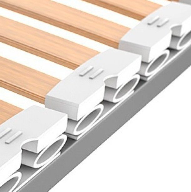 Ламели у данного основания крепятся при помощи пластиковых латодержателей, что гораздо надежнее, чем например, врезной способ крепления.