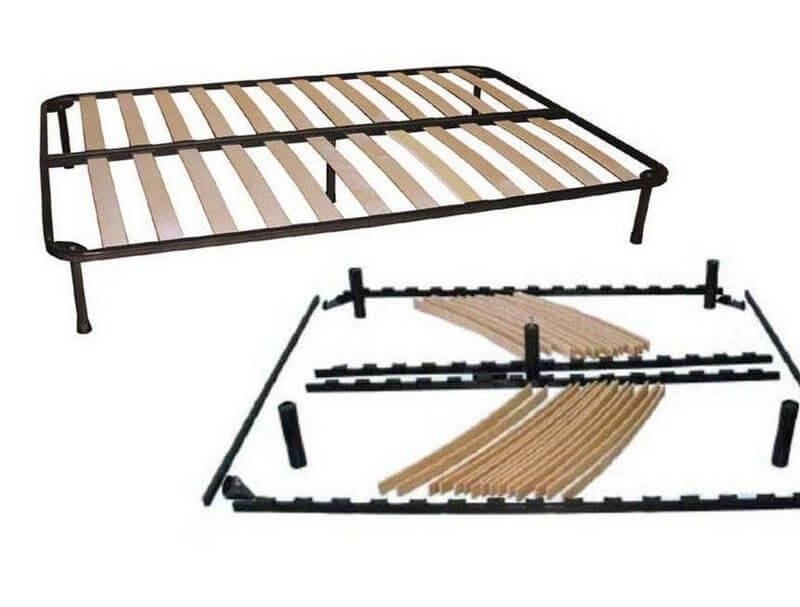 Высота основания 27,5 см. Высота ножек основания 25,5 см. Ширина одной ламели 6,6 см, расстояние между ламелями 7 см. В зависимости от ширины основания в комплекте идет от 4 до 8 ножек. Ножки круглые со специальными накладками снизу. Основание полностью разборное, его удобно перевозить на легковом автомобиле.