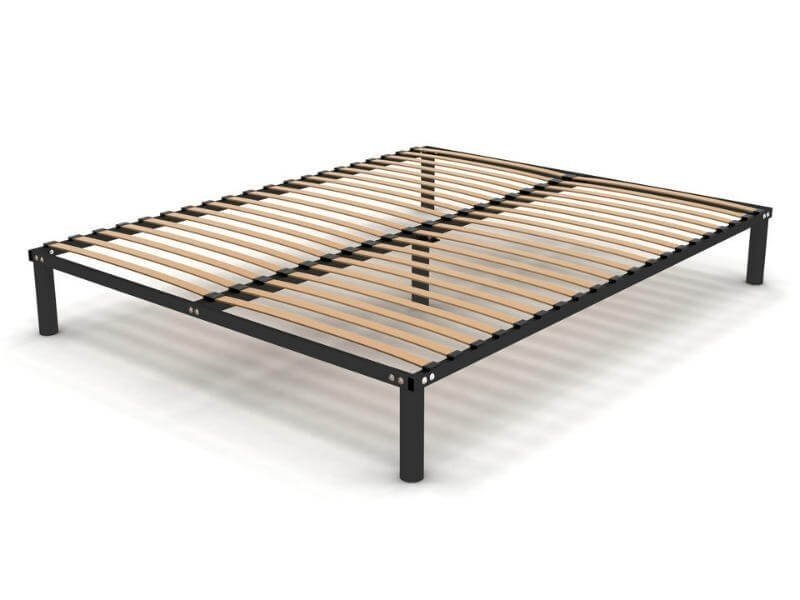 Основание может использоваться как самостоятельно, так и вместе с кроватью. Прочный металлический каркас основания выполнен из профильной трубы квадратного сечения 30х30 мм, толщина трубы 1,2 мм. Основание имеет закругленные углы. Оно окрашено черной, глянцевой, порошковой краской. Ламели крепятся к каркасу при помощи пластиковых латодержателей.