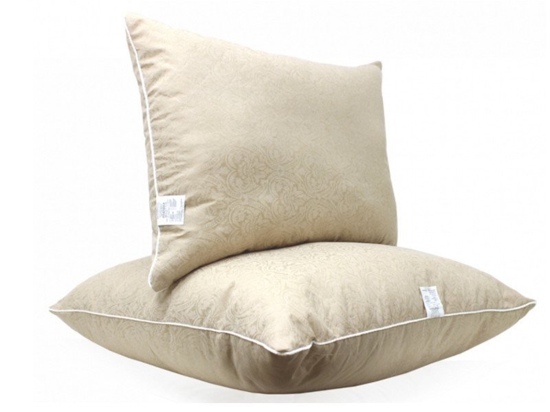 Подушка выполнена на основе экофайбера, с чехлом из верблюжьей шерсти.