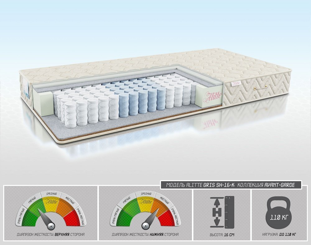Акция от магазина "TOP-MATRAS.RU" — официального диллера фабрики Alitte в Москве и по всей России: скидка 50% на Матрас Gris SH-16-K.