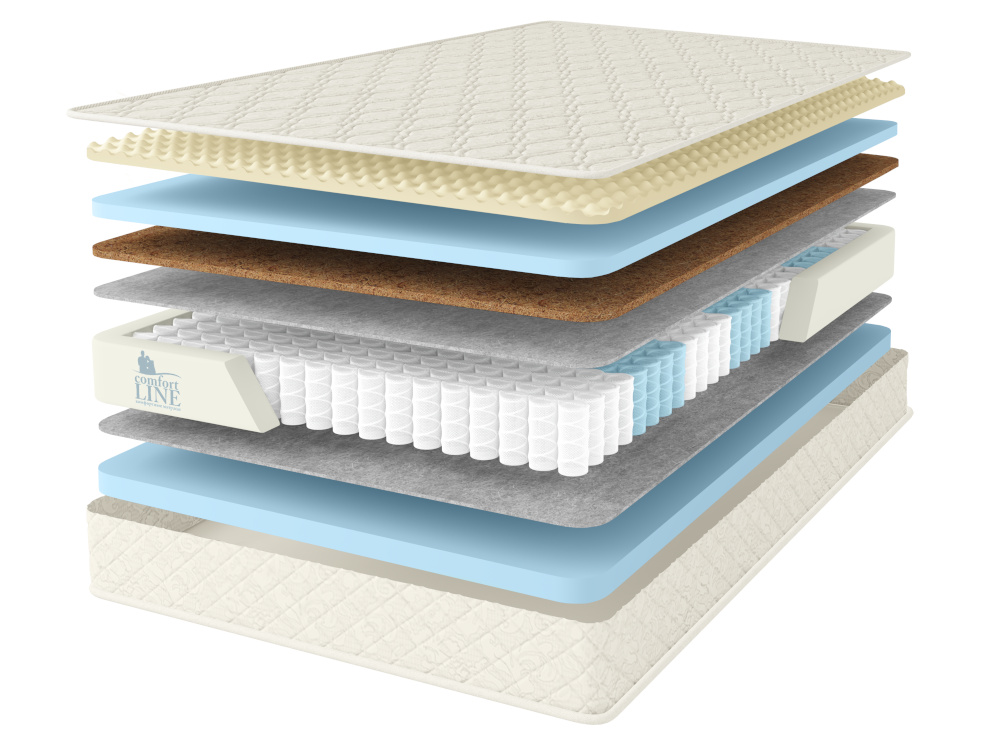 Кокосовая койра - экологически чистый натуральный наполнитель, состоящий из кокосовых волокон, обладает хорошим воздухо- и влагообменом, гипоаллергенностью и долговечностью.