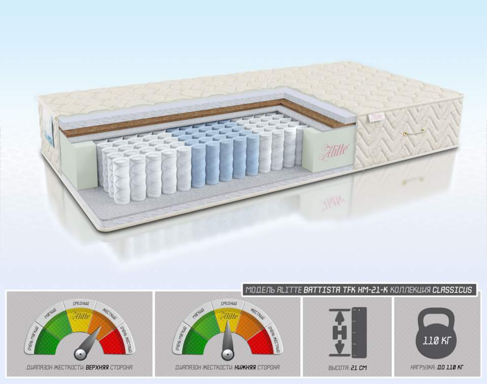 Акция от магазина "TOP-MATRAS.RU" — официального диллера фабрики Alitte в Москве и по всей России: скидка 50% на Матрас Alitte Battista TFK HM-21-K.