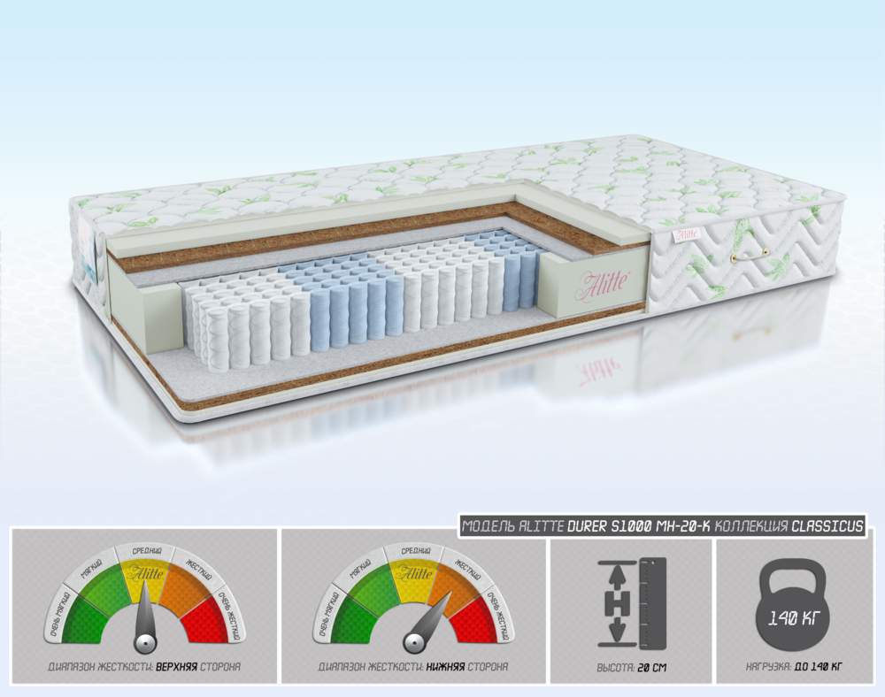 Акция от магазина "TOP-MATRAS.RU" — официального диллера фабрики Alitte в Москве и по всей России: скидка 50% на Матрас Alitte Durer S1000 MH-20-K.