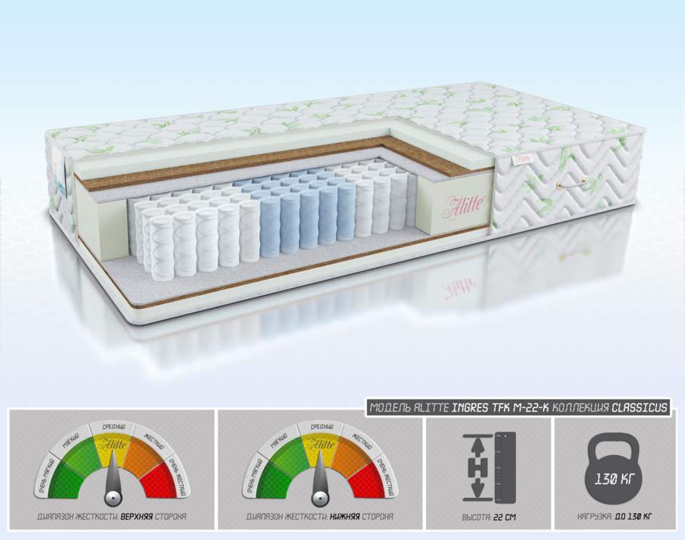 Акция от магазина "TOP-MATRAS.RU" — официального диллера фабрики Alitte в Москве и по всей России: скидка 50% на Матрас Alitte Ingres TFK M-22-K.