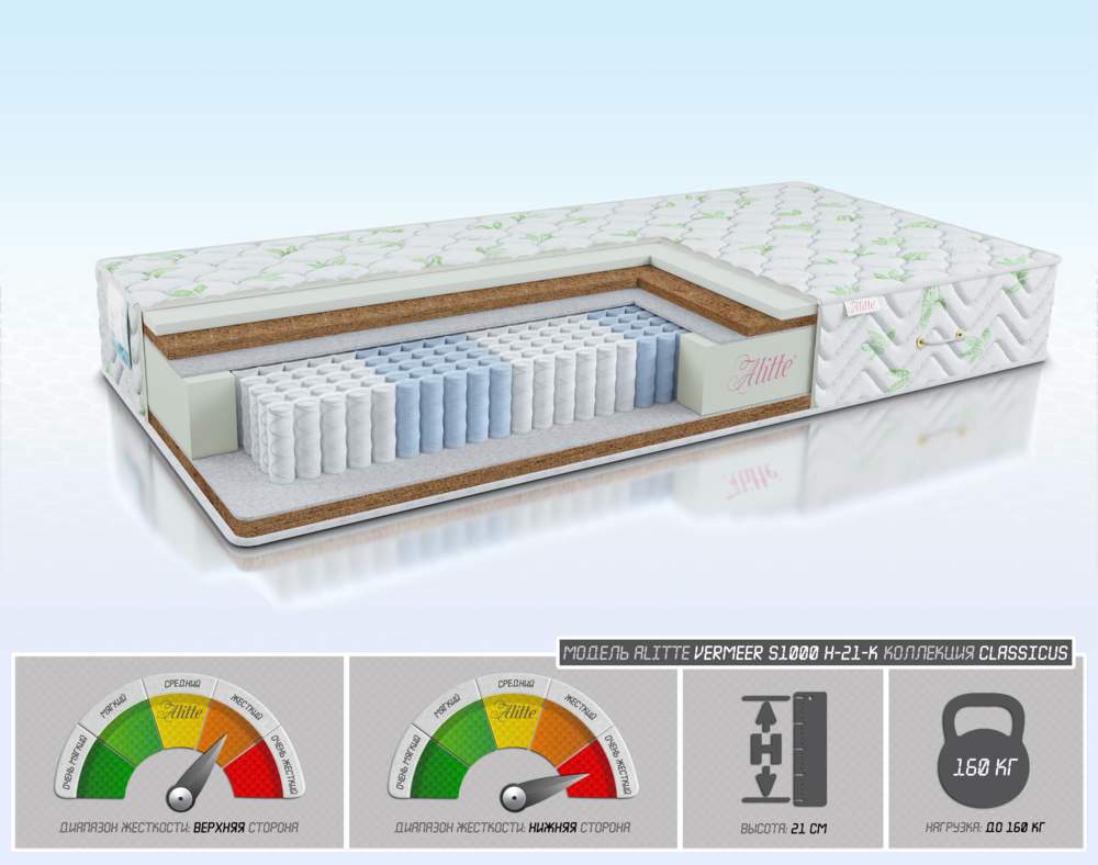 Акция от магазина "TOP-MATRAS.RU" — официального диллера фабрики Alitte в Москве и по всей России: скидка 50% на Матрас Alitte Vermeer S1000 H-21-K.