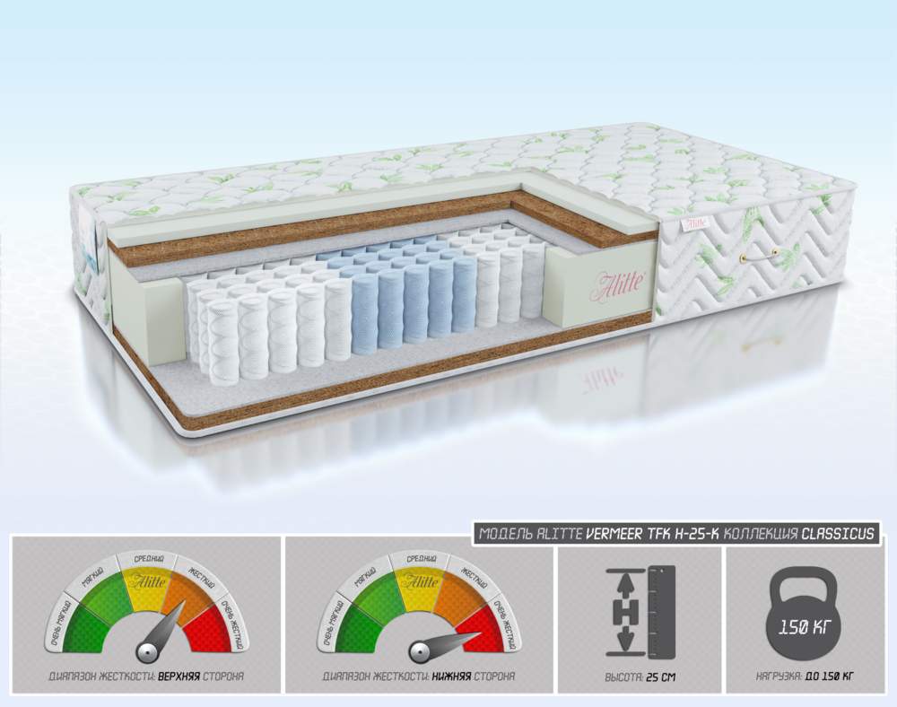 Акция от магазина "TOP-MATRAS.RU" — официального диллера фабрики Alitte в Москве и по всей России: скидка 50% на Матрас Alitte Vermeer TFK H-25-K.