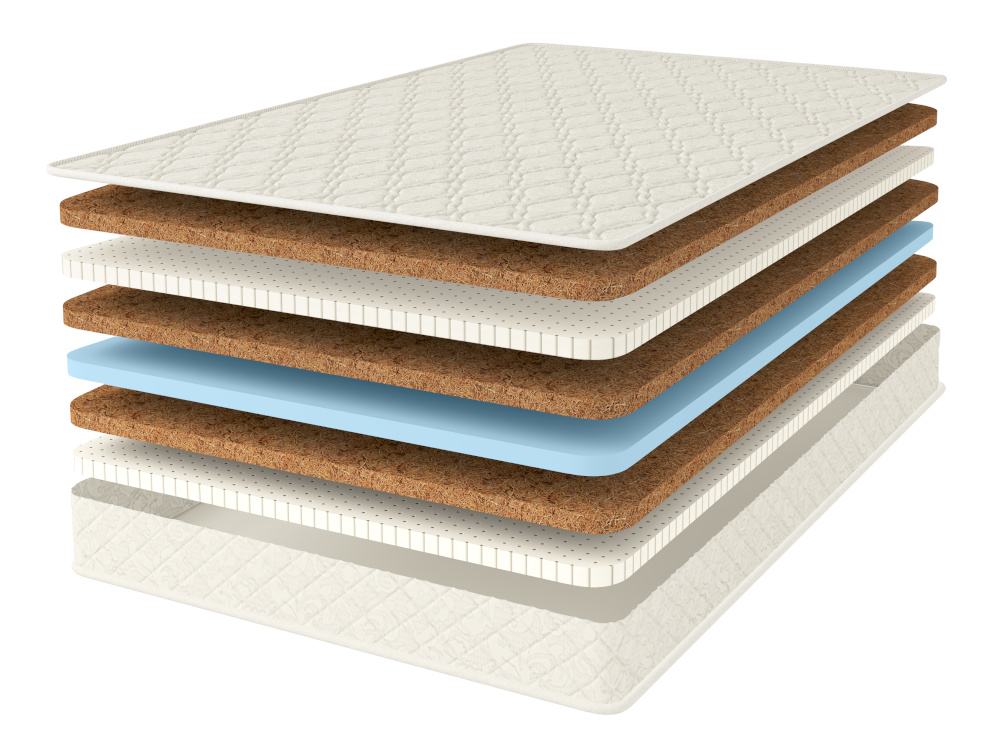 Кокосовая койра - экологически чистый натуральный наполнитель, состоящий из кокосовых волокон, обладает хорошим воздухо- и влагообменом, гипоаллергенностью и долговечностью.