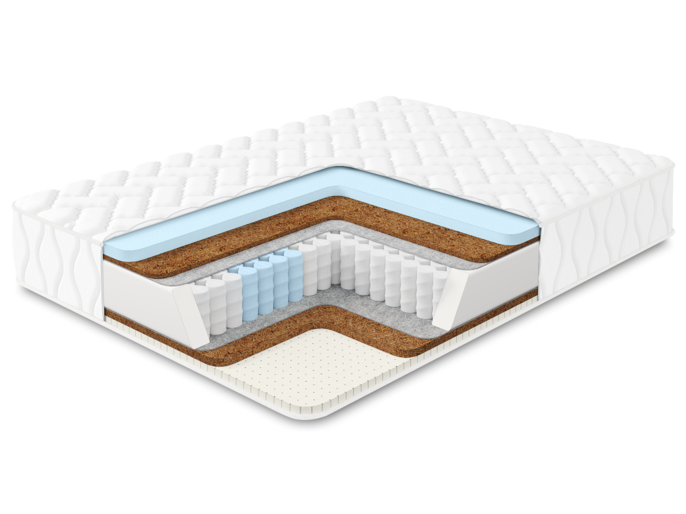 Кокосовая койра - экологически чистый натуральный наполнитель, состоящий из кокосовых волокон, обладает хорошим воздухо- и влагообменом, гипоаллергенностью и долговечностью.