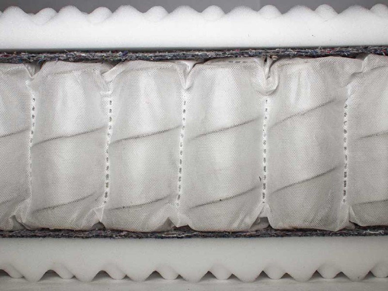 Термовойлок обладает высокой износоустойчивостью и прочностью, часто используется как изолирующий слой между пружинным блоком и верхними наполнителями. Умеренно жесткий, хорошо распределяет нагрузку, не подвержен слеживанию и деформации, поэтому часто используется как основа в беспружинных матрасах.