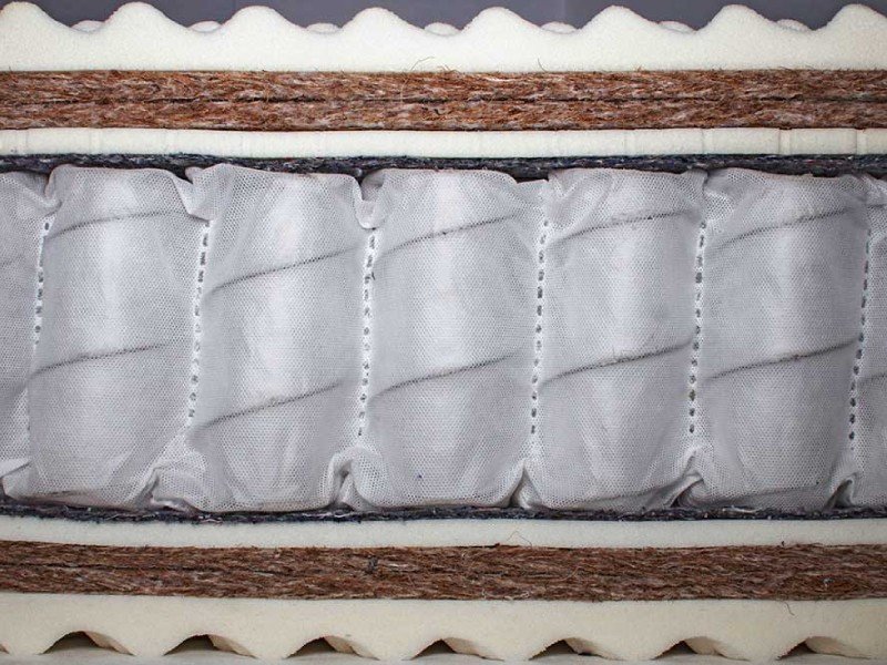 Кокосовая койра - экологически чистый материал, жесткий, упругий, с высокими ортопедическими свойствами. Струттофайбер - гибкий, эластичный, износоустойчивый материал, имеющий плотную структуру. Объединив эти два наполнителя, технологи добились сочетания экологичности, жесткости и особой прочности в новом материале - Би-кокос.