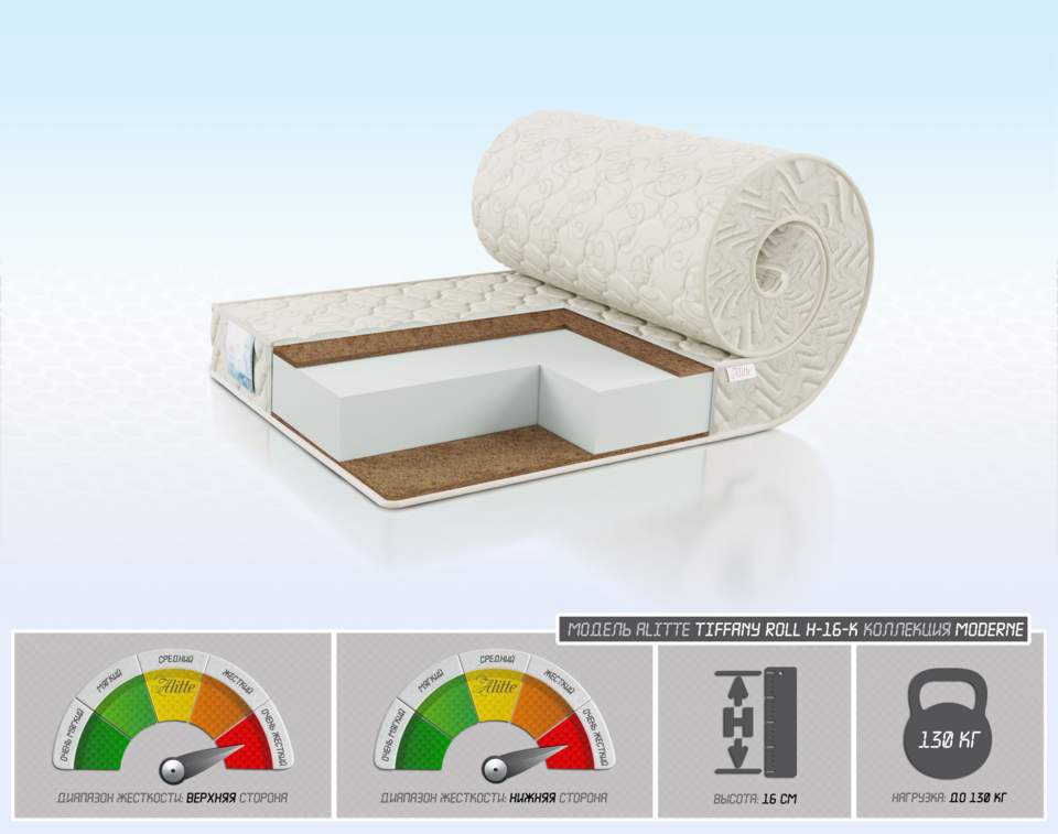 Акция от магазина "TOP-MATRAS.RU" — официального диллера фабрики Alitte в Москве и по всей России: скидка 50% на Матрас Alitte Tiffany Roll H-16-K.