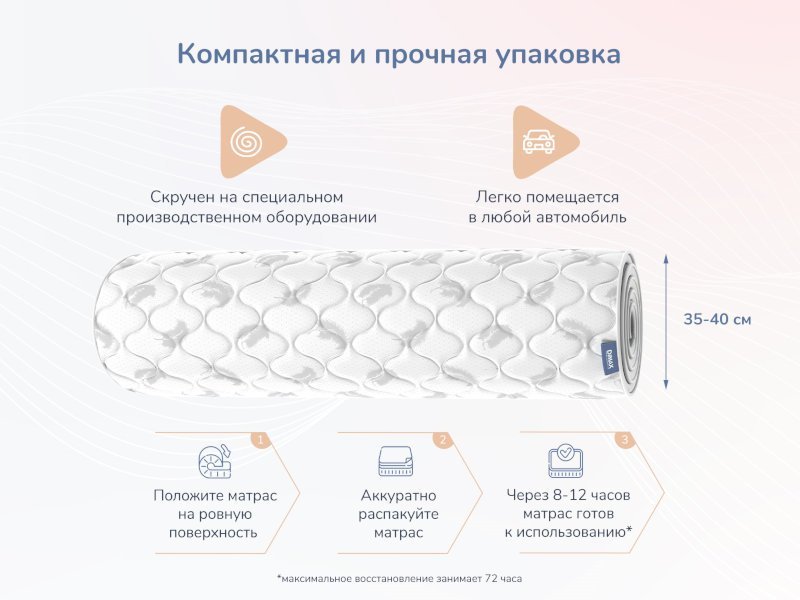 - Срок доставки: любой матрас может быть доставлен в день заказа при оформления заявки до 13 часов. Или на следующий день при оформления заявки после 15 часов.