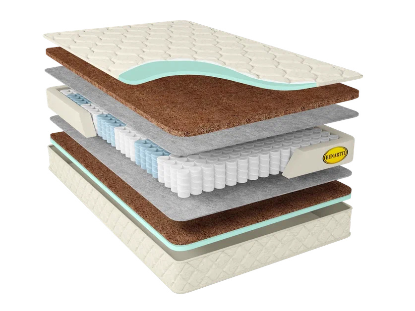 Кокосовая койра - экологически чистый натуральный наполнитель, состоящий из кокосовых волокон, обладает хорошим воздухо- и влагообменом, гипоаллергенностью и долговечностью.
