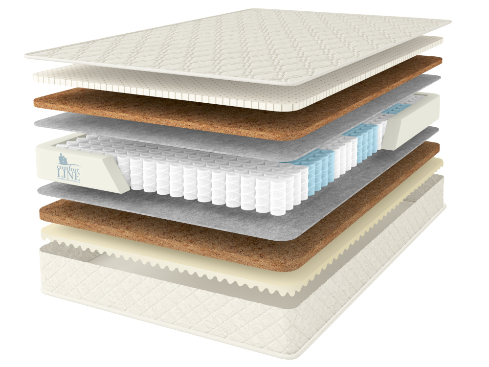 Кокосовая койра - экологически чистый натуральный наполнитель, состоящий из кокосовых волокон, обладает хорошим воздухо- и влагообменом, гипоаллергенностью и долговечностью.