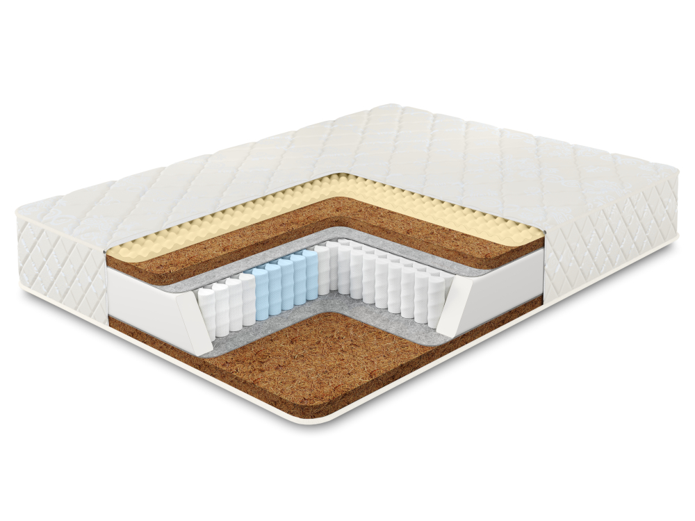 Кокосовая койра - экологически чистый натуральный наполнитель, состоящий из кокосовых волокон, обладает хорошим воздухо- и влагообменом, гипоаллергенностью и долговечностью.