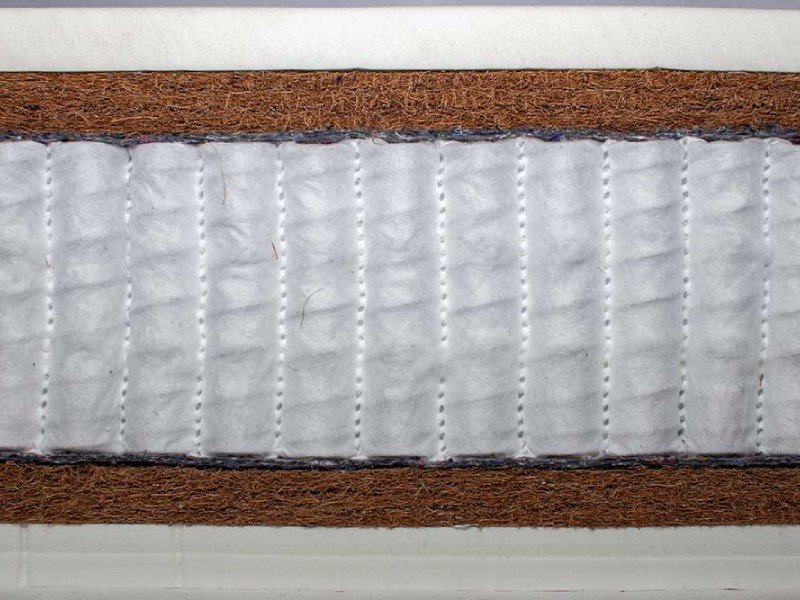 Кокосовая койра - экологически чистый натуральный наполнитель, состоящий из кокосовых волокон, обладает хорошим воздухо- и влагообменом, гипоаллергенностью и долговечностью.