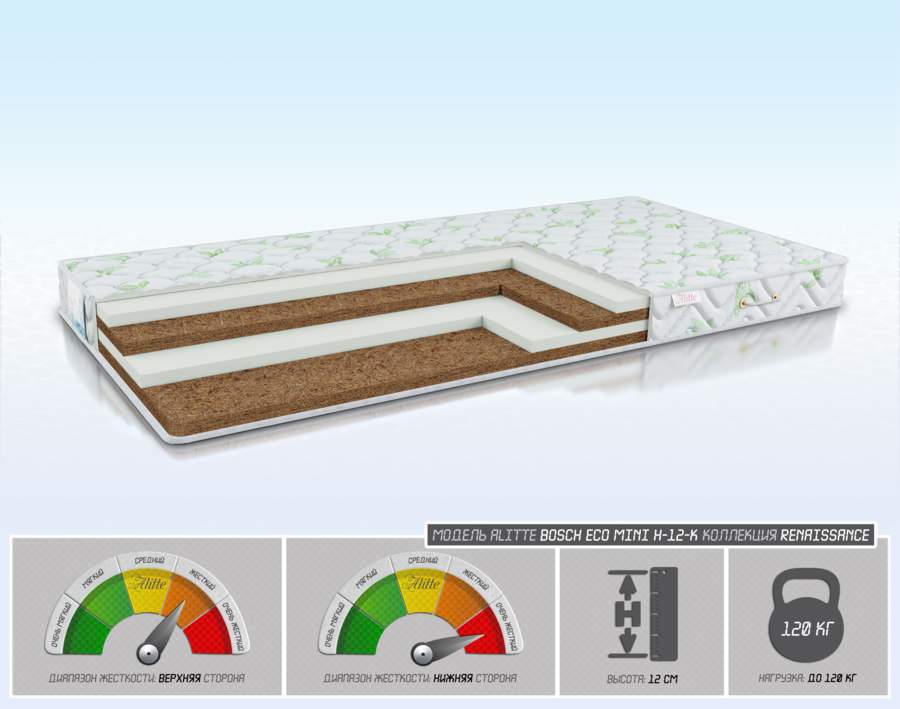 Акция от магазина "TOP-MATRAS.RU" — официального диллера фабрики Alitte в Москве и по всей России: скидка 50% на Матрас Alitte Bosch Eco Mini H-12-K.